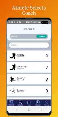 Athletes connect to coaches by creating an athlete profile and searching through filters for the coach they feel will improve their skills. Filters include types of sports, coach’s specialties within sports, star ratings for the coach, years of experience, proximity and cost of virtual lesson. Athletes are able to access knowledgeable coaches with various levels of experience in selected sport. Athletes will be asked to give a star rating to each coach selected, based on the coach’s knowledge of the sport, communication skills and how well the feedback has helped in improve skill. Athletes will have access to content packages with customised knowledge from coaches and subscription offers to specific coaches that allows them to receive unlimited uploads and feedback from the coach.