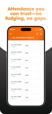 Key Features of the mobile app: Attendance Management: - GPS Based Attendance - Selfie & Face Authentication during Punch in/out - Live view of Who is in/out for supervisors - Live Location tracking for field employees - Option to apply for attendance regularization - Approval of attendance regularization at various levels