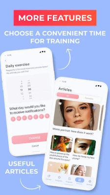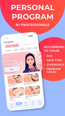 No matter what your goal is, be sure that our workout plan got you covered. The app is designed to help women improve face symmetry, accomplish skinny face, double chin remover, and get ideal skinny face. Also, there are problem-specific acne remover, wrinkle remover & double chin remover!