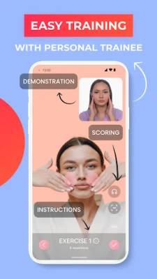 All you need is your phone, clean skin and hands. Choose the right program from the list of workout plan. Put your phone in a comfortable place and go! How does FaceYoga work? Using the front camera and AR technology, the app determines which parts of the face will be involved in the exercise. Perform facial exercises according to a video demonstration from a personal trainer (face dermatologist) and text -audio instructions.