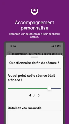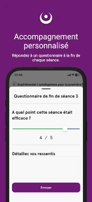 - Reçois tes programmes personnalisés. - Écoute et visionne les séances de ton programme. - Réponds au questionnaire personnalisé à la fin de chaque séance. - Vois ta progression au cours du temps.