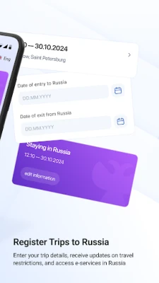 The ruID mobile app is the official application created for foreign citizens and stateless persons who are planning to enter or are already on the territory of the Russian Federation. The app enables users to fill out an entry application, obtain information about any entry restrictions, and provides convenient, secure, and multifunctional access to Russian government services.