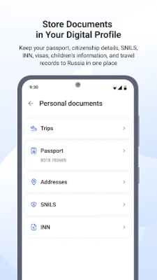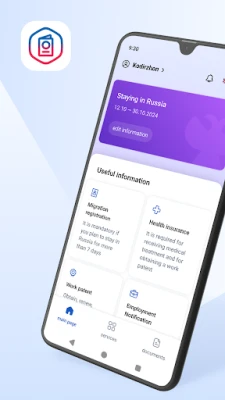 • Access to electronic services via webview interface: employment documents, visas, SNILS issuance, INN, patents, and work permits.