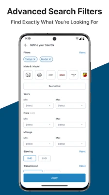 • Advanced Search Filters: Find exactly what you're looking for by using filters like mileage, engine type, year, and more.