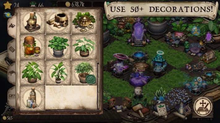 Design and decorate your cozy idle workshop with customizable tables, furniture, and enchanting decorations. Create your dream space straight out of a witch’s cottage—complete with a magical vibe!